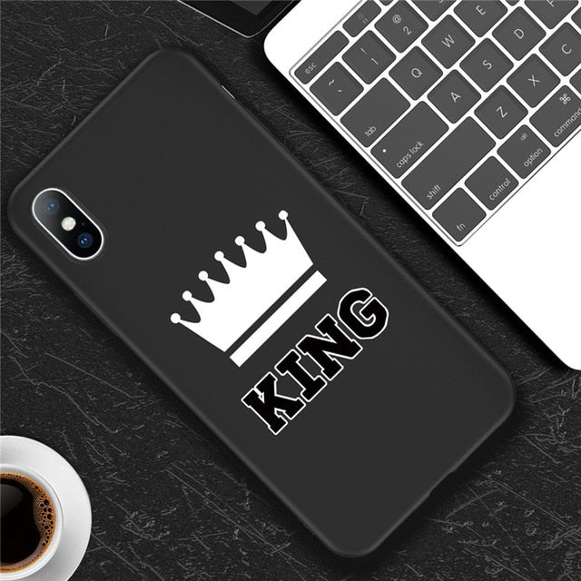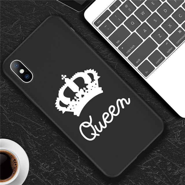 Features: Cartoon Crown Letter King Queen Pattern Printed Soft TPU Phone Case